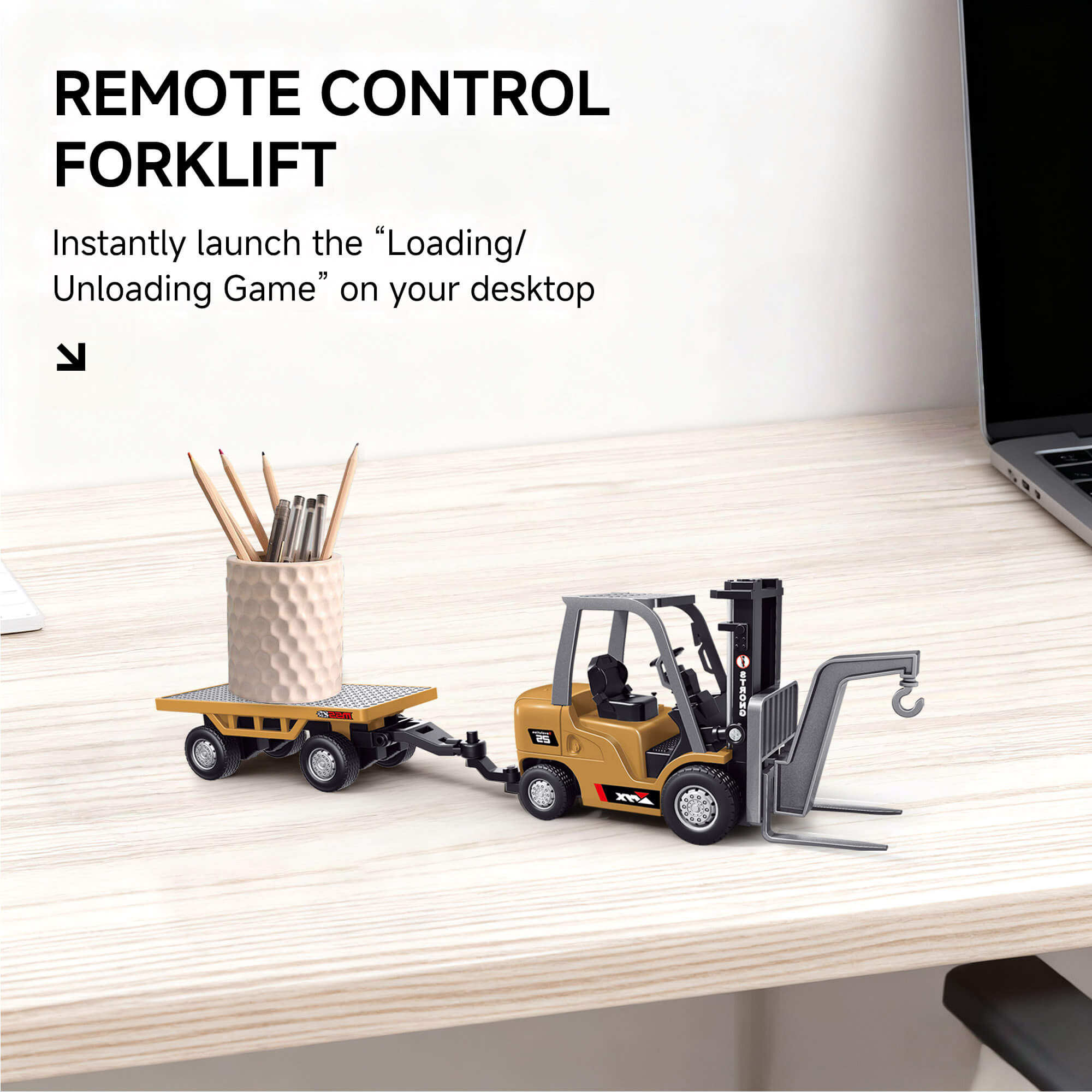 Looking for a fun way to spice up your workspace? Meet the Mini Remote Control Forklift Car, your new favorite desk companion! This 1:64 scale forklift is the perfect combination of compact size and professional-grade fun. At only 4.5in x 1.5in x 2.6in, it fits right on your desk without taking up too much space, so you can squeeze in a quick “loading and unloading game” anytime.
